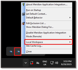 From the System Tray, right-click on Meridian Application Integration, then select: